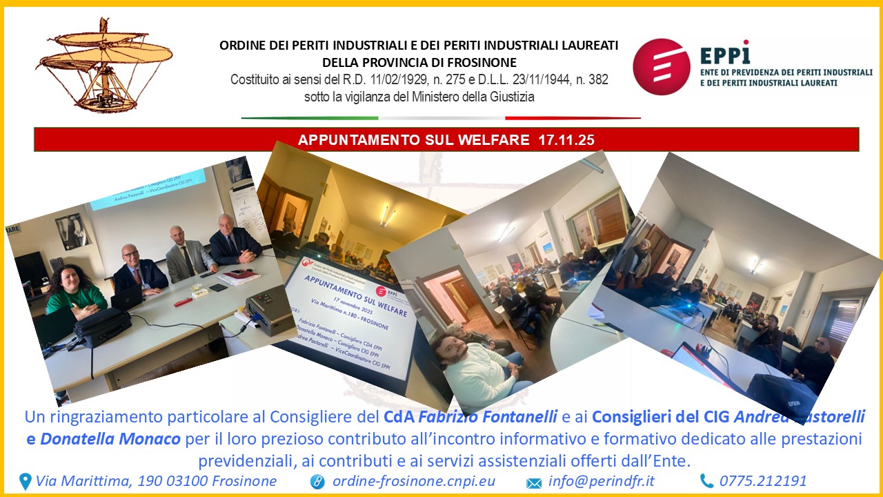 17.11.2025 Appuntamento sul Welfare incontro informativo e formativo su prestazioni previdenziali, contributi e servizi assistenziali dell’Ente